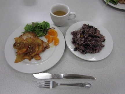 ご飯・豚肉とリンゴのソテー完成